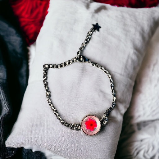Sold outTiny red/pink flower silver bracelet