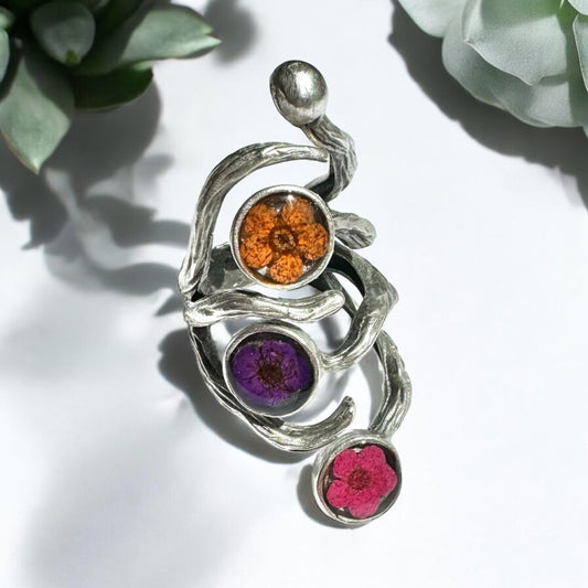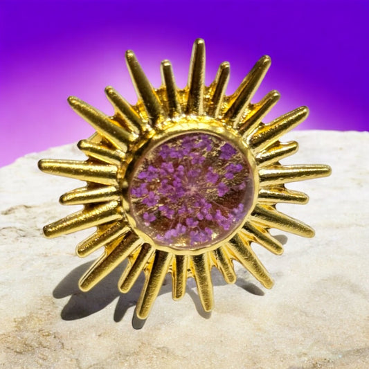 Sold outSunburst ring with purple flower