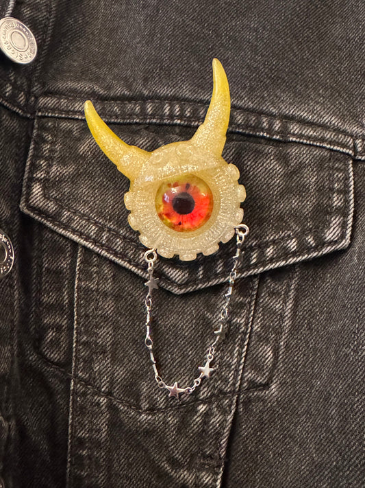 Goth brooch, Black and green Monster eye brooch in resin. Model Spiky.