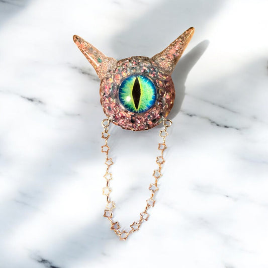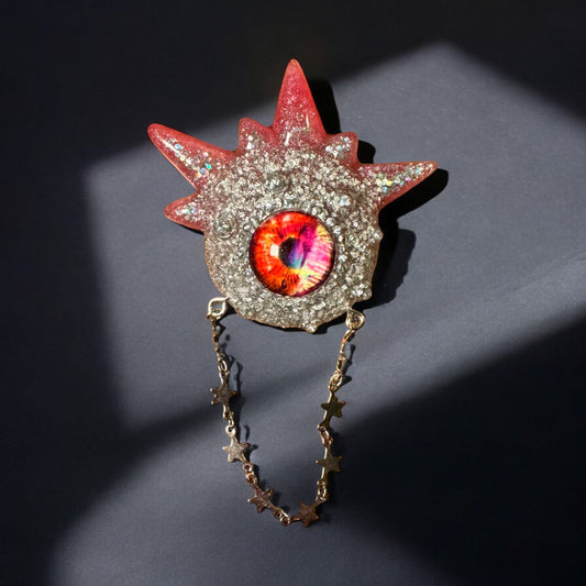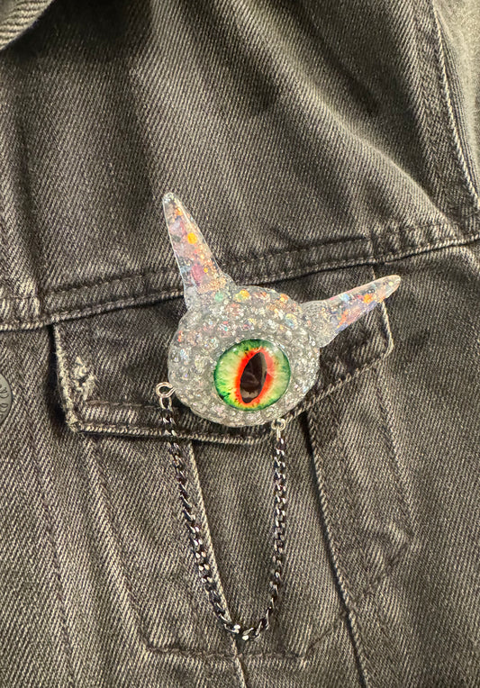 Handmade Eyeball brooch, unique jewelry, silver monster brooch with chain, Model Pointy