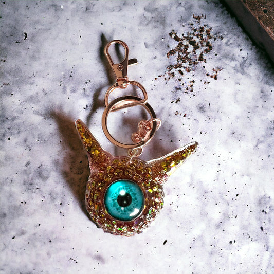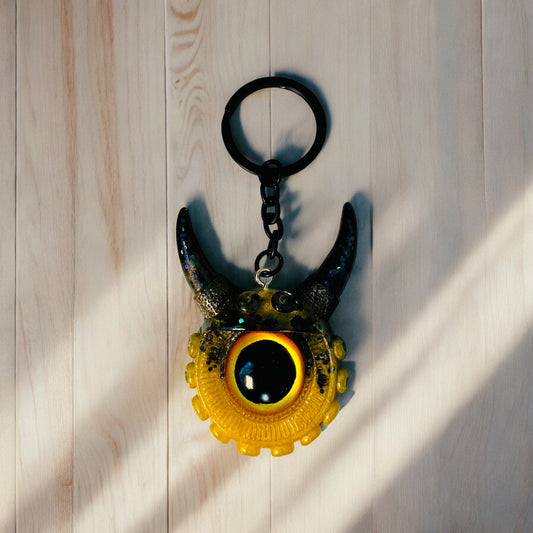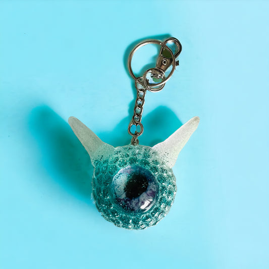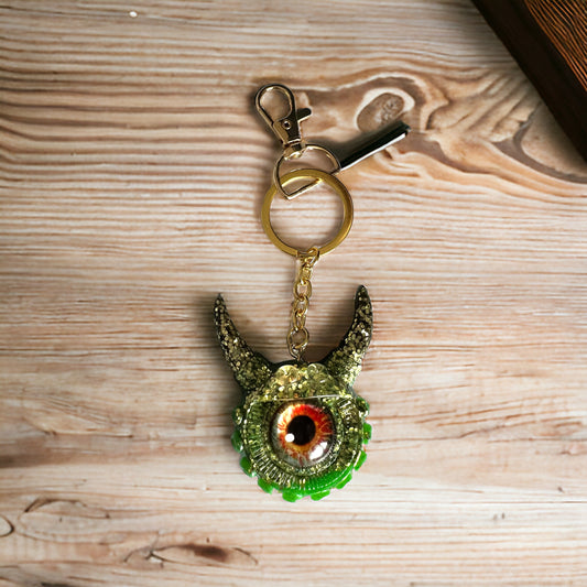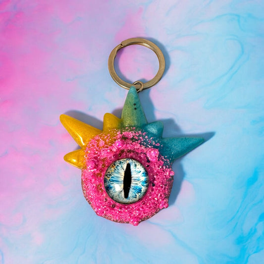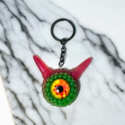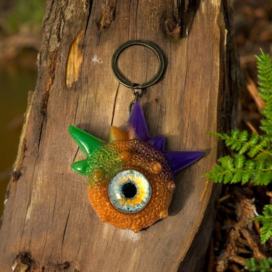 Creepy Monster Eye keychain, Orange, purple and green. Model Spiky.