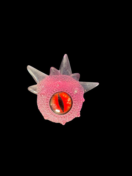 One eyed monster brooch, pink monster with red evil eye brooch, Model Spiky.