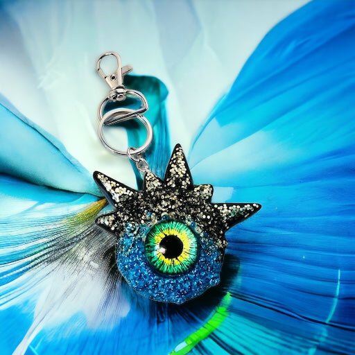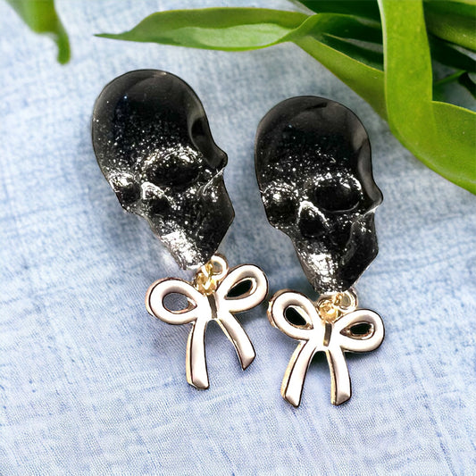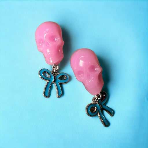 Bubblegum Skull with blue bow and silver metal earrings studs