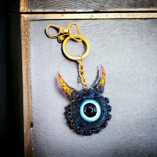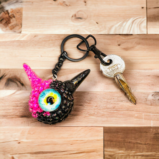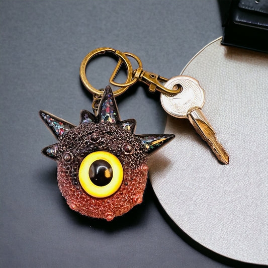 Creepy Monster Eye keychain, black and copper. Model Spiky.