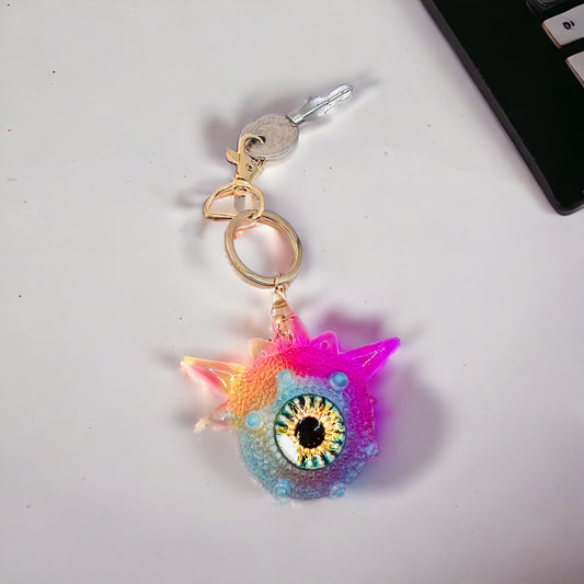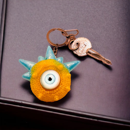 Monster keychain, pink,blue and yellow. Model Spiky.