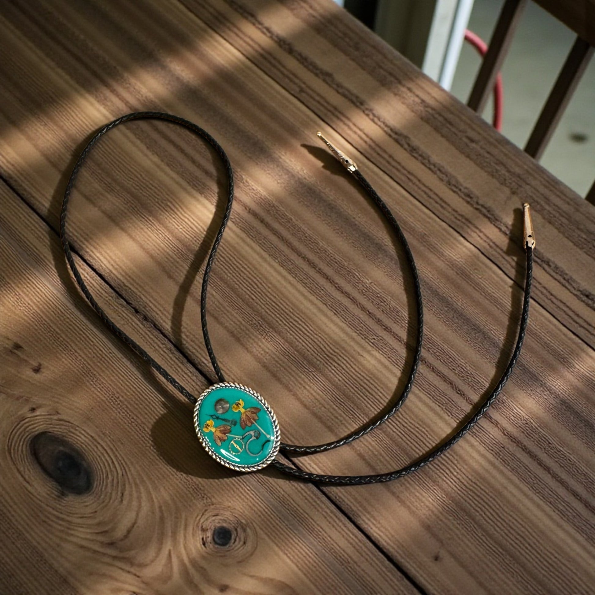 These bolo ties are handmade in high quality resin, they are lightweight, durable and resistant. The cord is made of genuine leather.